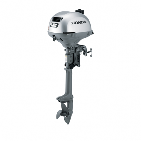 The Honda BF2.3DH LCHU is a lightweight, portable, 2.3 horsepower, 4-stroke outboard motor known for its reliability and quiet operation. It's designed for small boats, canoes, and inflatables, and features an air-cooled engine and a centrifugal clutch. The "LCHU" designation indicates a long shaft and manual recoil start.