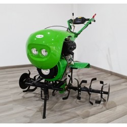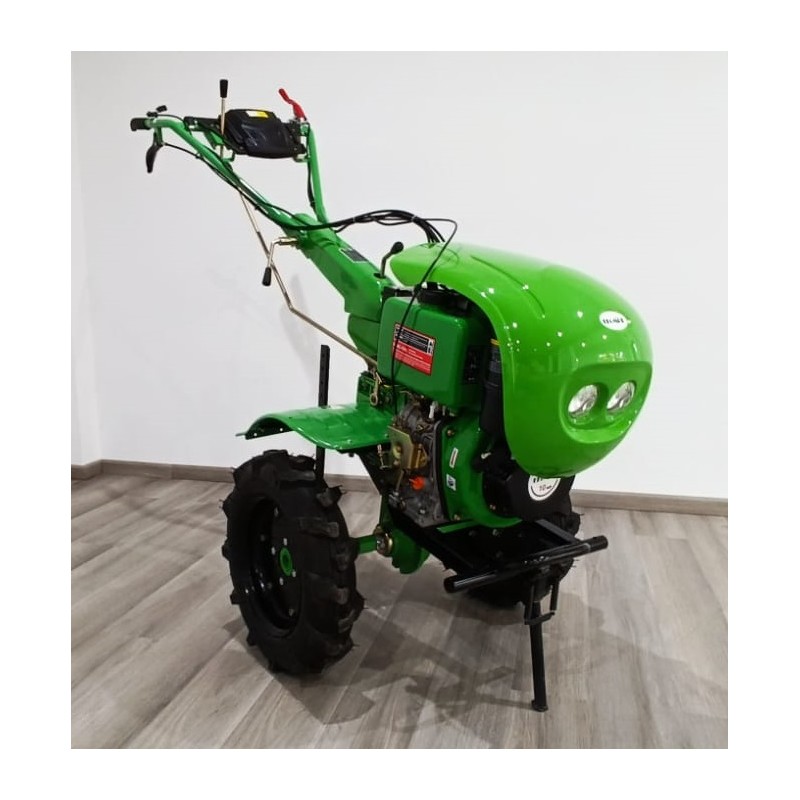 A powerful diesel tiller (12HP) with electric start Ekomot WG 7.5CE equipped with engine hood and headlights.