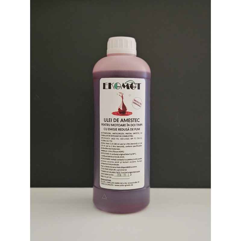 Se foloseste in amestec cu benzina, in proportie de 1:50 (100 ml ulei la 5 litri de benzina), sau in proportia recomandata de producatorul motorului. Cantitatea de 1 litru de ulei Ekomot de amestec este suficienta pt prepararea a 50 litri de amestec combustibil benzina cu ulei.