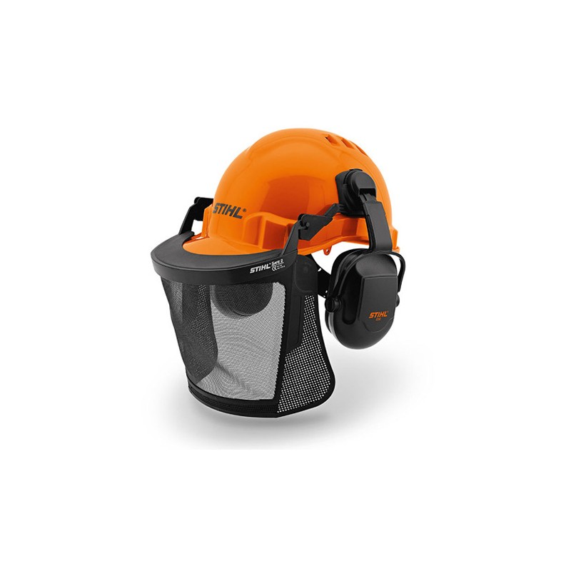 Casca de protectie usoara cu antifoane integrate, echipata cu gauri de ventilare. Protectia fetei se realizeaza prin intermediul mastii de nylon. Casca este prevazuta cu un canal de scurgere a apei de ploaie. Conforma cu standardele EN 352, EN 397 si EN 1731.