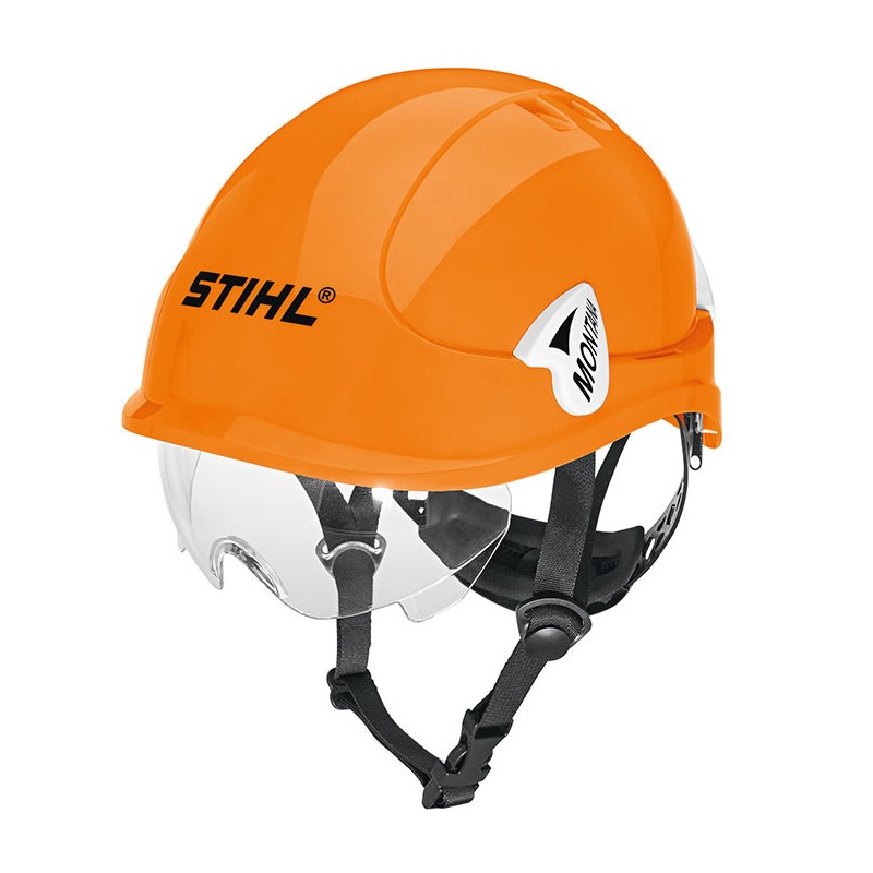 Cască de siguranță deosebit de ușoară din policarbonat pentru lucrul în copaci și la sol. Ochelari de protecție retractabili, protecție auditivă integrată cu cablu, curea de bărbie în 4 puncte, accesorii interioare în 6 puncte, bandă reglabilă cu clichet, autocolant reflectorizant. Ochelarii de protecție sunt testați la EN 166, dopurile pentru urechi la EN 352 și casca la EN 397.